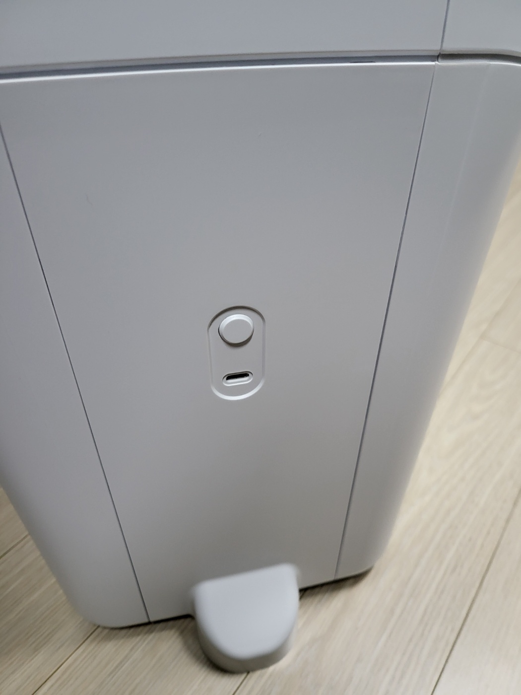 - 후면부에 버튼과 충전단자가 있습니다.